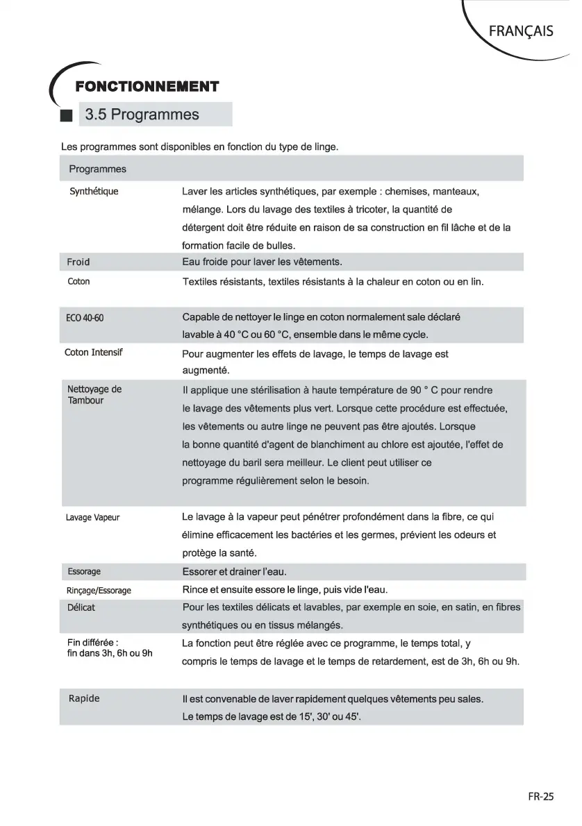 compris le temps de lavage et le temps de retardement, est de 3h, 6h ou 9h.