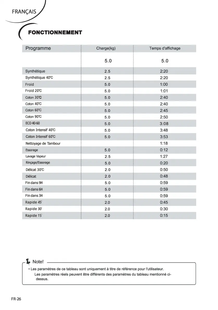 tableau sont uniquement a titre de reference pour l'utilisateur.