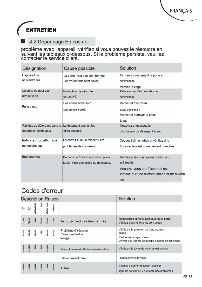 probleme avec l'appareil, verifiez si vous pouvez le resoudre en