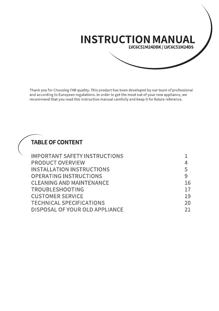 Bekijk gratis de handleiding van FAR LVC6C51M24ES, stel vragen en lees de antwoorden op veelvoorkomende problemen, of gebruik onze assistent om sneller informatie in de handleiding te vinden of uitleg te krijgen over specifieke functies.