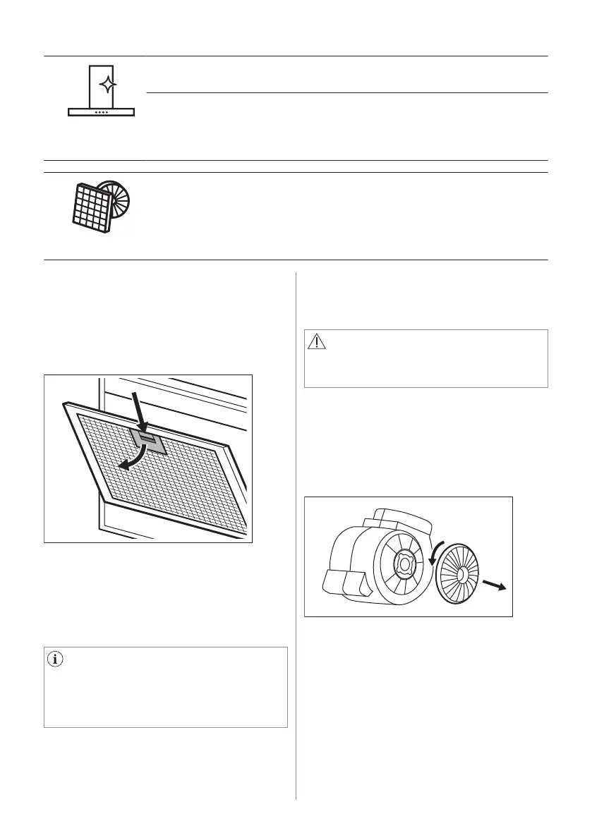 rengjører fettfilteret. Det aktiverte kullfilteret kan ikke vaskes eller regenereres, og må