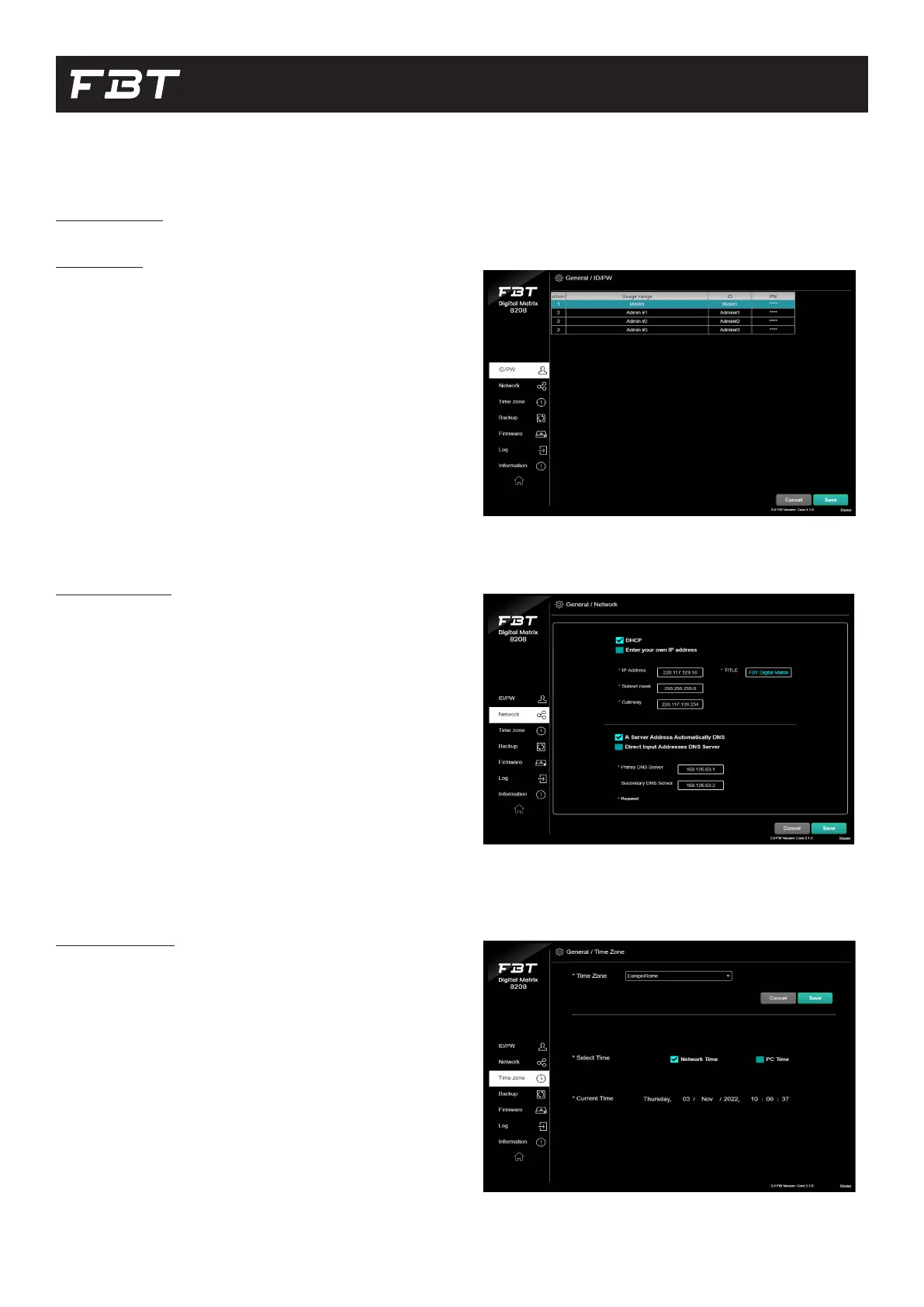 This page is for network setting. You can set the DM-C8208’s detailed IP
