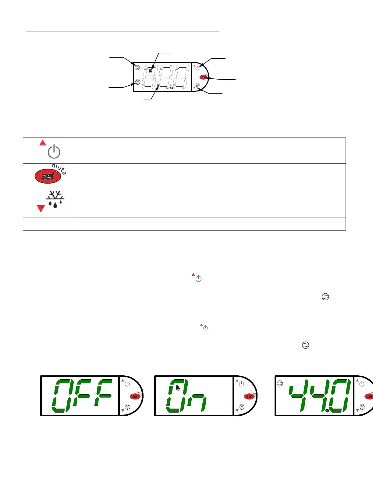 forth between the relative current case temperature and “Off”. The compressor run indicator will be