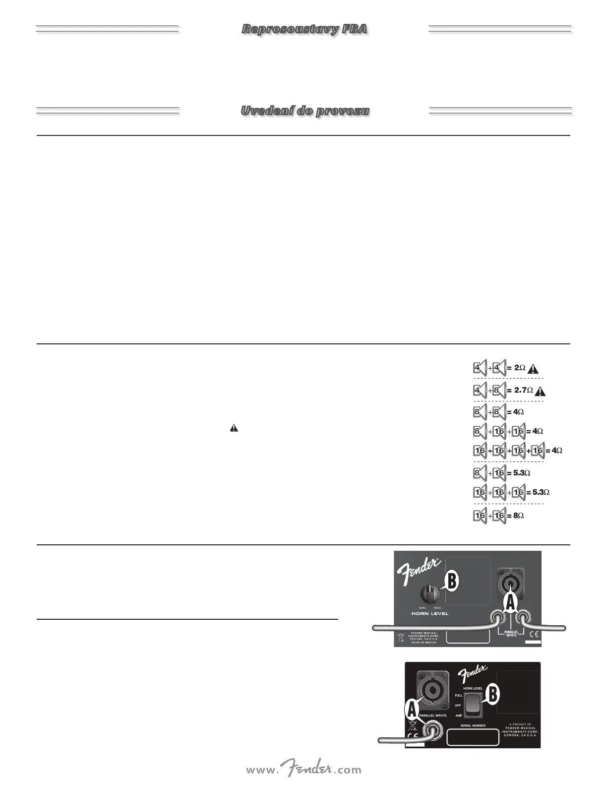 vhodná určitá kombinace zapojení reprosoustav. POZNÁMKA: Všechny basové reprosoustavy značky Fender® (a