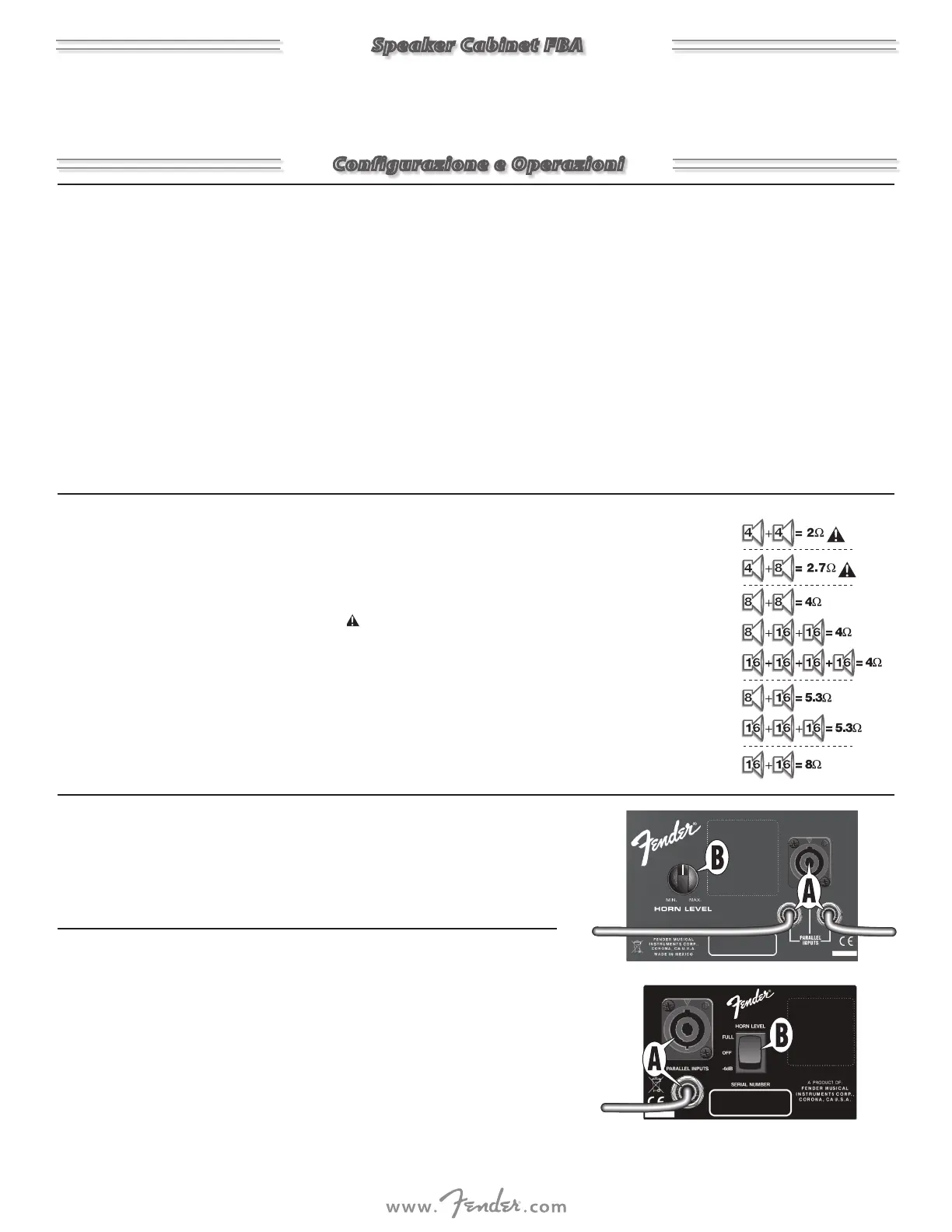 di impedenza dell'amplificatore con il carico d'impedenza degli altoparlanti. NOTA: Tutti i cabinet Fender® per basso (e la