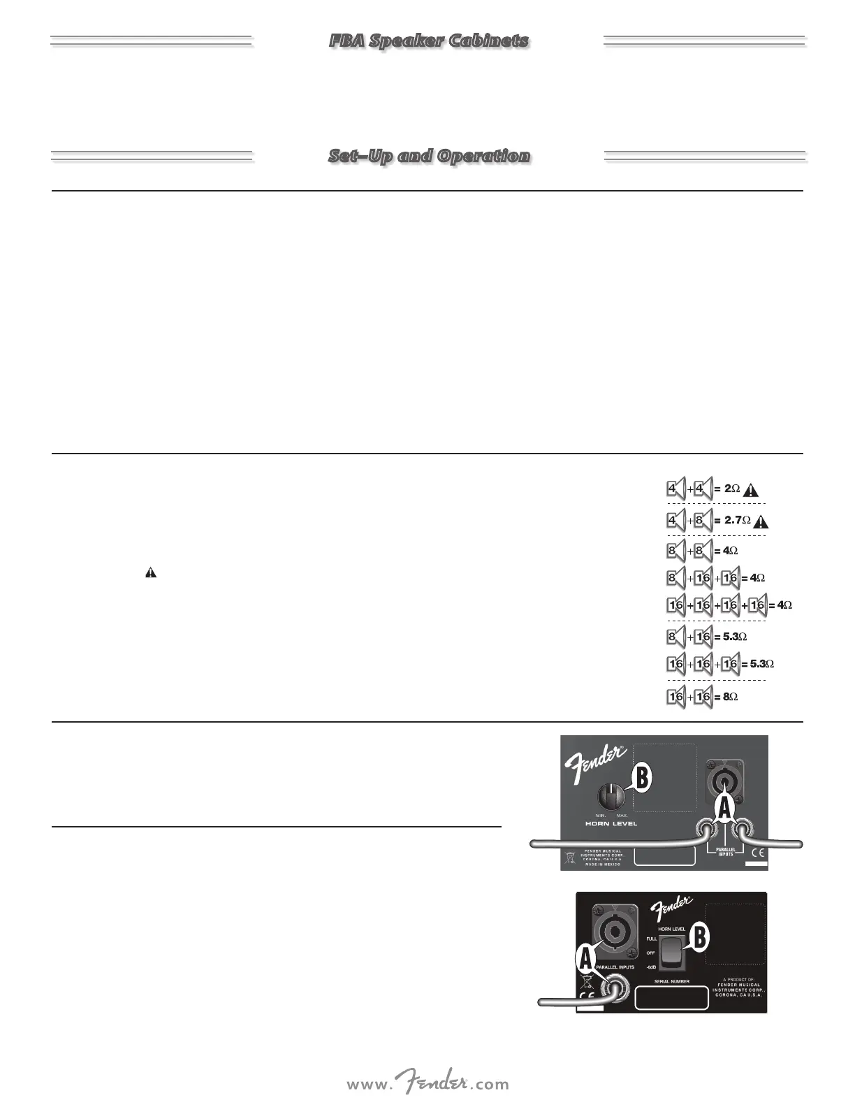 particular combination of speakers is appropriate for your amplifier. NOTE: All Fender® bass speaker cabinets (and