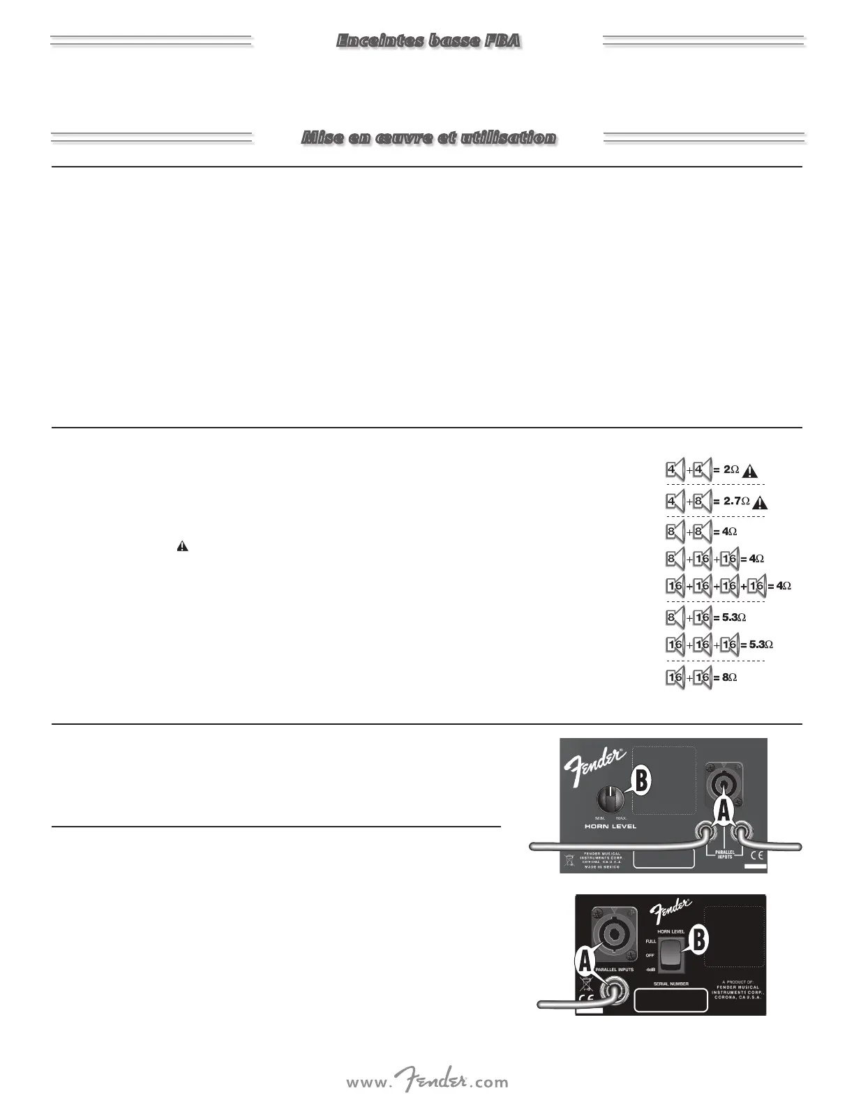 enceintes sont adaptées à l'amplificateur. REMARQUE : Toutes les enceintes basse Fender® (et la plupart des autres