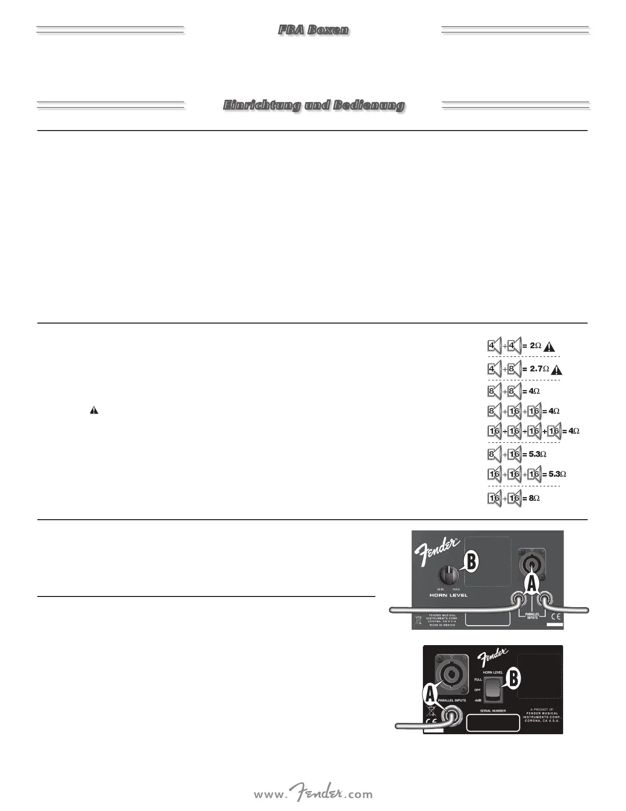 bestimmte Boxenkombination für Ihren Amp geeignet ist. HINWEIS: Alle Fender® Bassboxen sowie die meisten