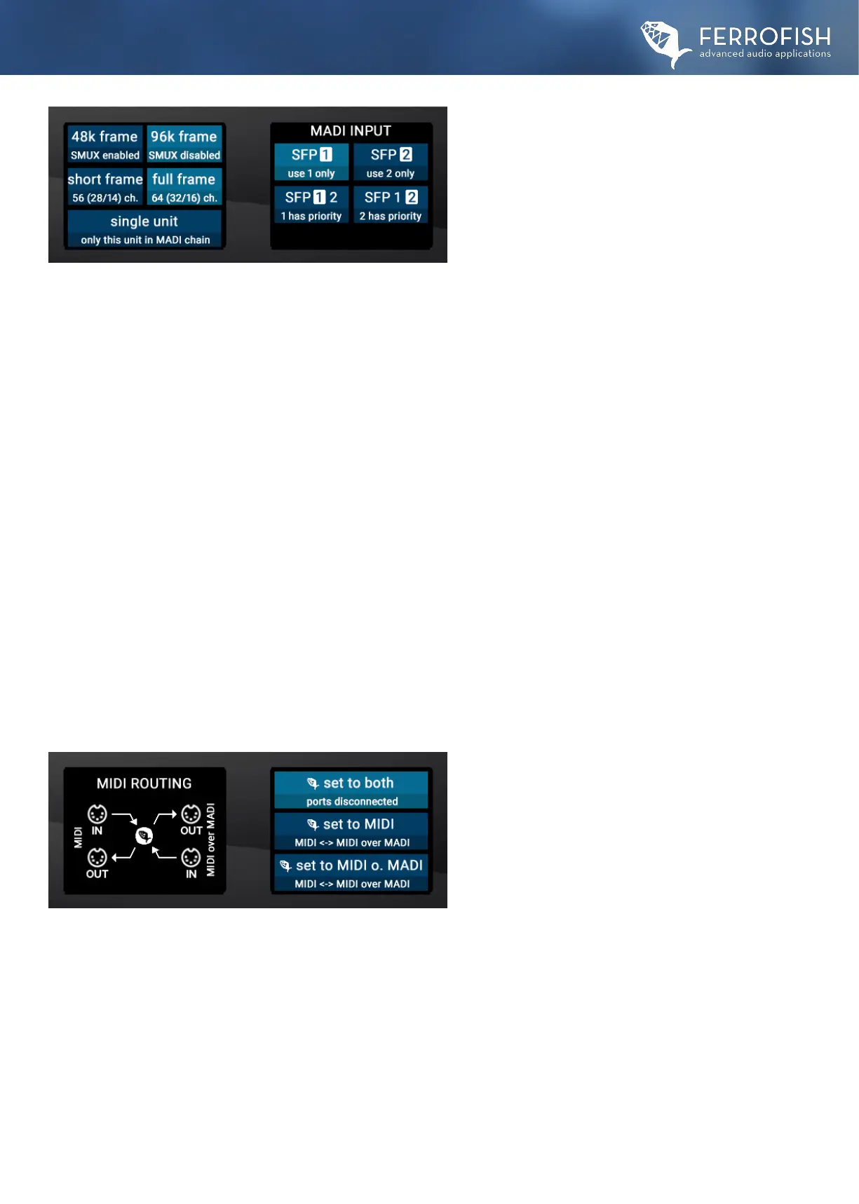Here you can select the priority of the two MADI SFP ports (1&2) via one of the four presets: