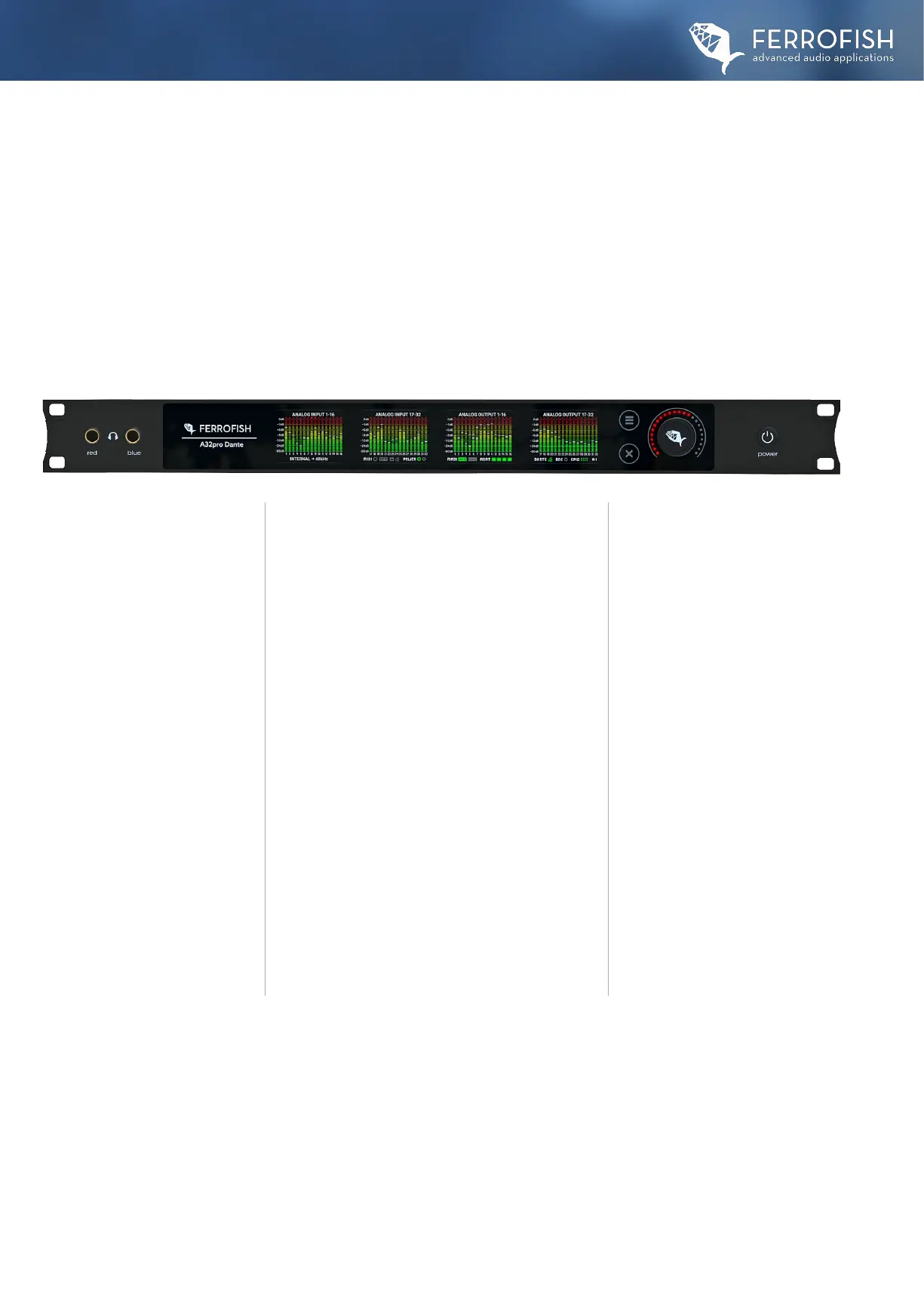 Bekijk gratis de handleiding van Ferrofish A32pro, stel vragen en lees de antwoorden op veelvoorkomende problemen, of gebruik onze assistent om sneller informatie in de handleiding te vinden of uitleg te krijgen over specifieke functies.