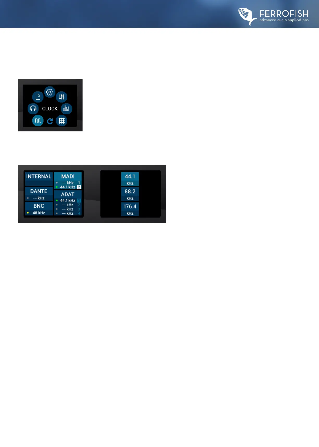 In the lower field of the respective button, the measured sample frequency is displayed. The current frequency of the wordclock generator of the