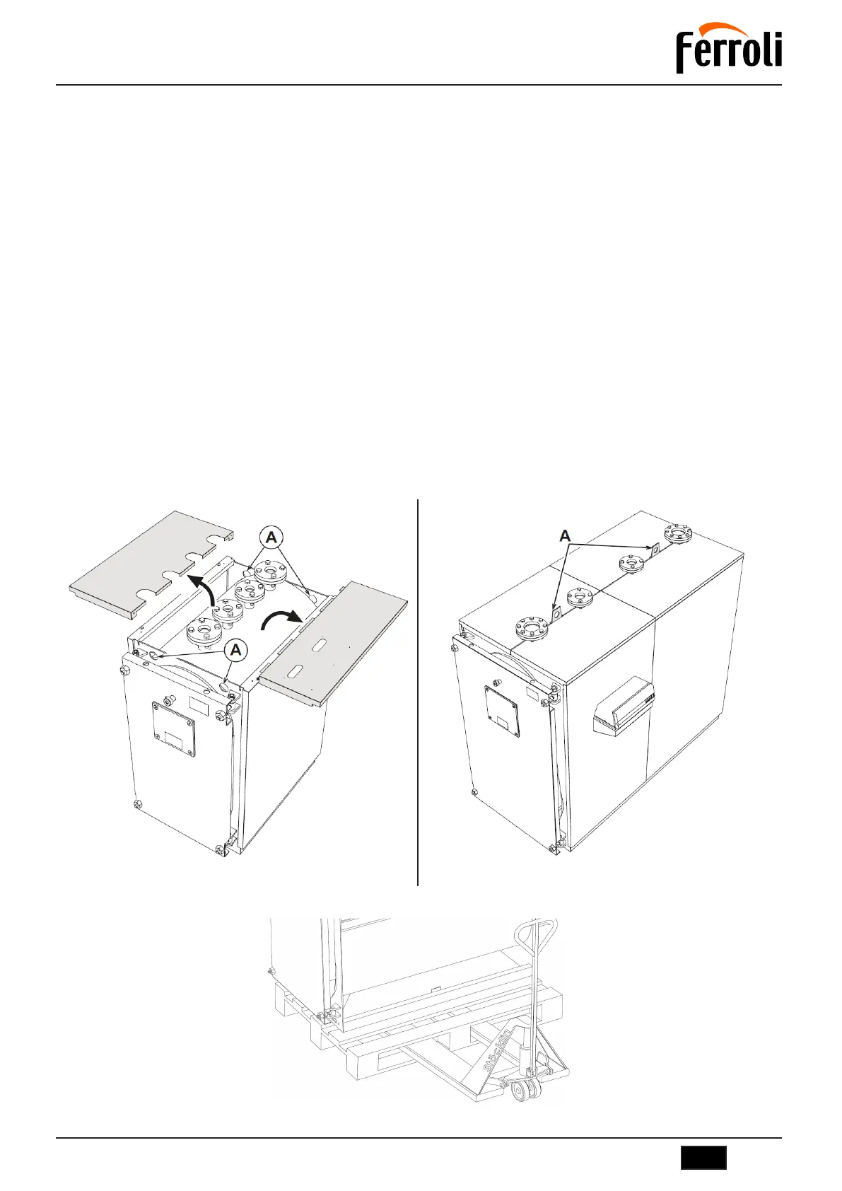 Le caldaie TP3 COND sono dotate di aggancio di sollevamento “A” (vedi fig. 3 e fig. 4). Porre attenzione alla movimentazione e avvalersi