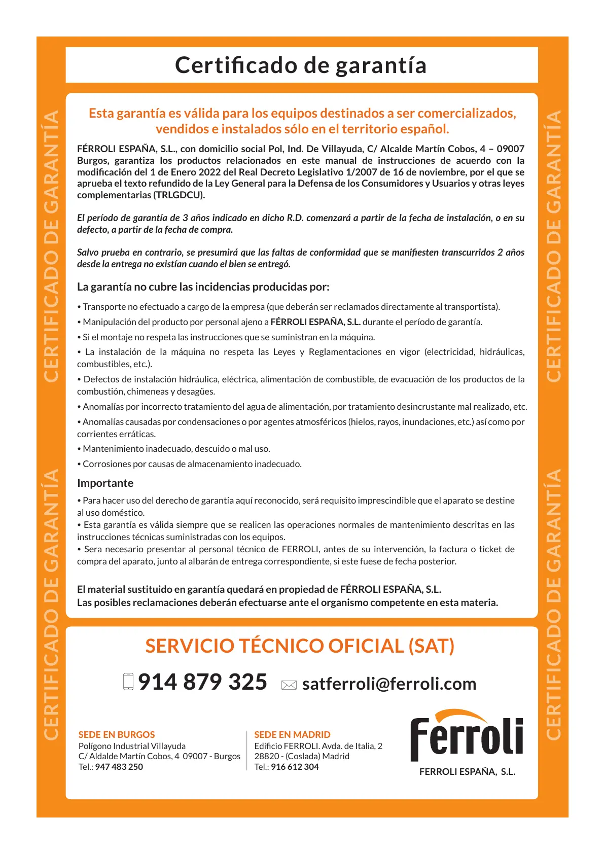 Sera necesario presentar al personal técnico de FERROLI, antes de su intervención, la factura o ticket de