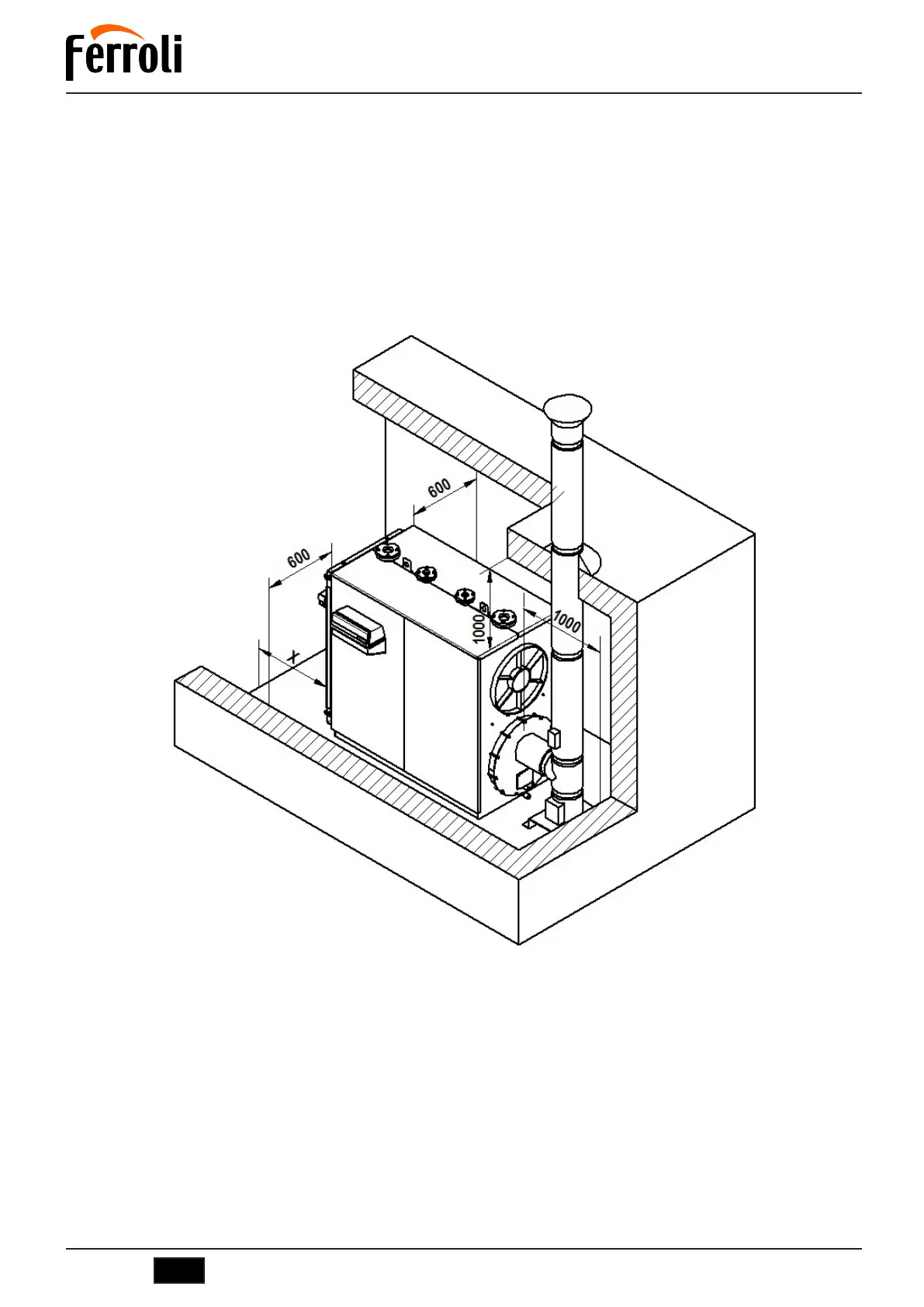 there must be a free space of at least the length of the boiler body and, in any case, never less than 1300 mm; it is also necessary to check