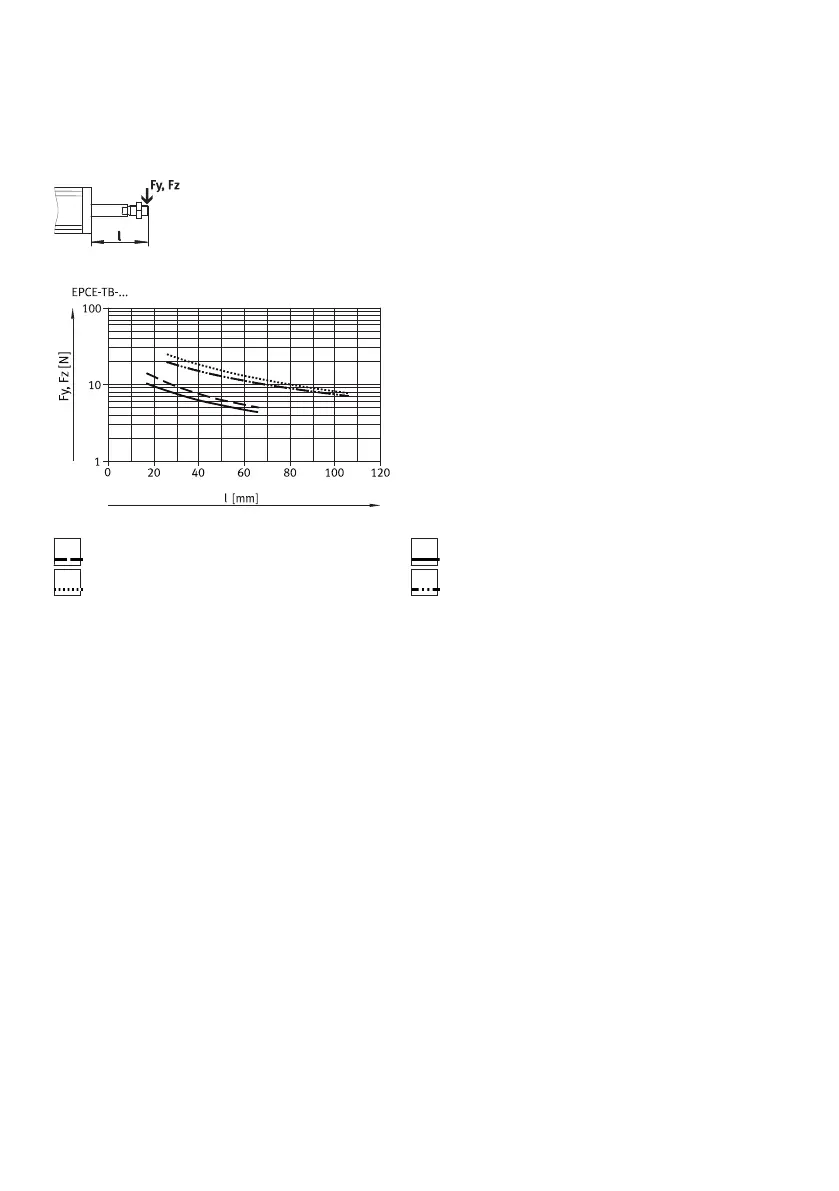 Fig. 11: EPCE, max. transverse loadFy, Fz as a function of the piston rod lengthl