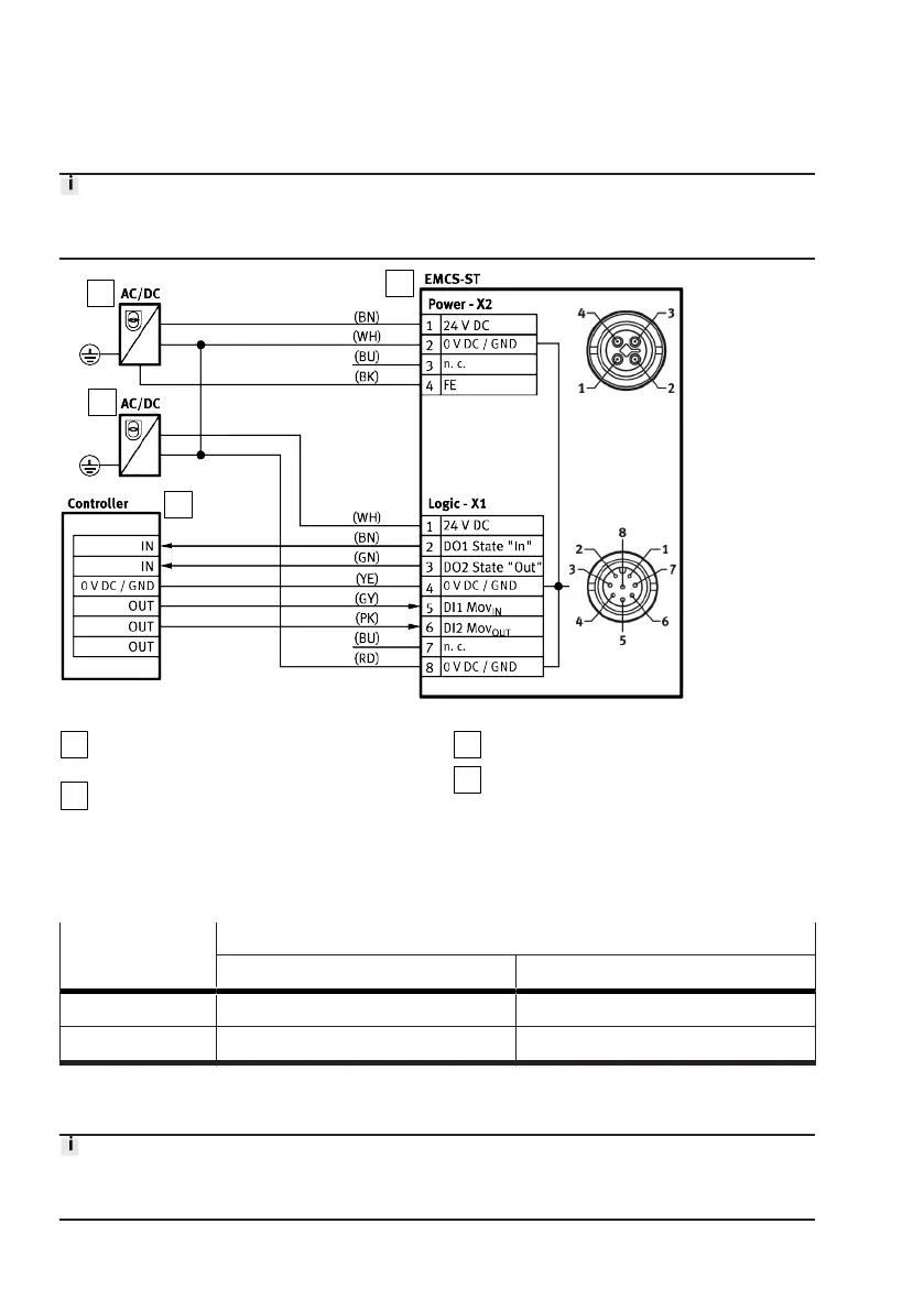 Tab. 2: Overview of status and control signals as a function of electrical levels