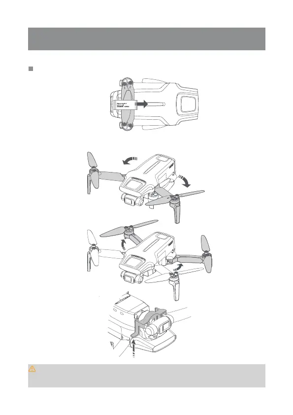 ·Unfold the drone. First, unfold the front arms, then unfold the rear arms, and