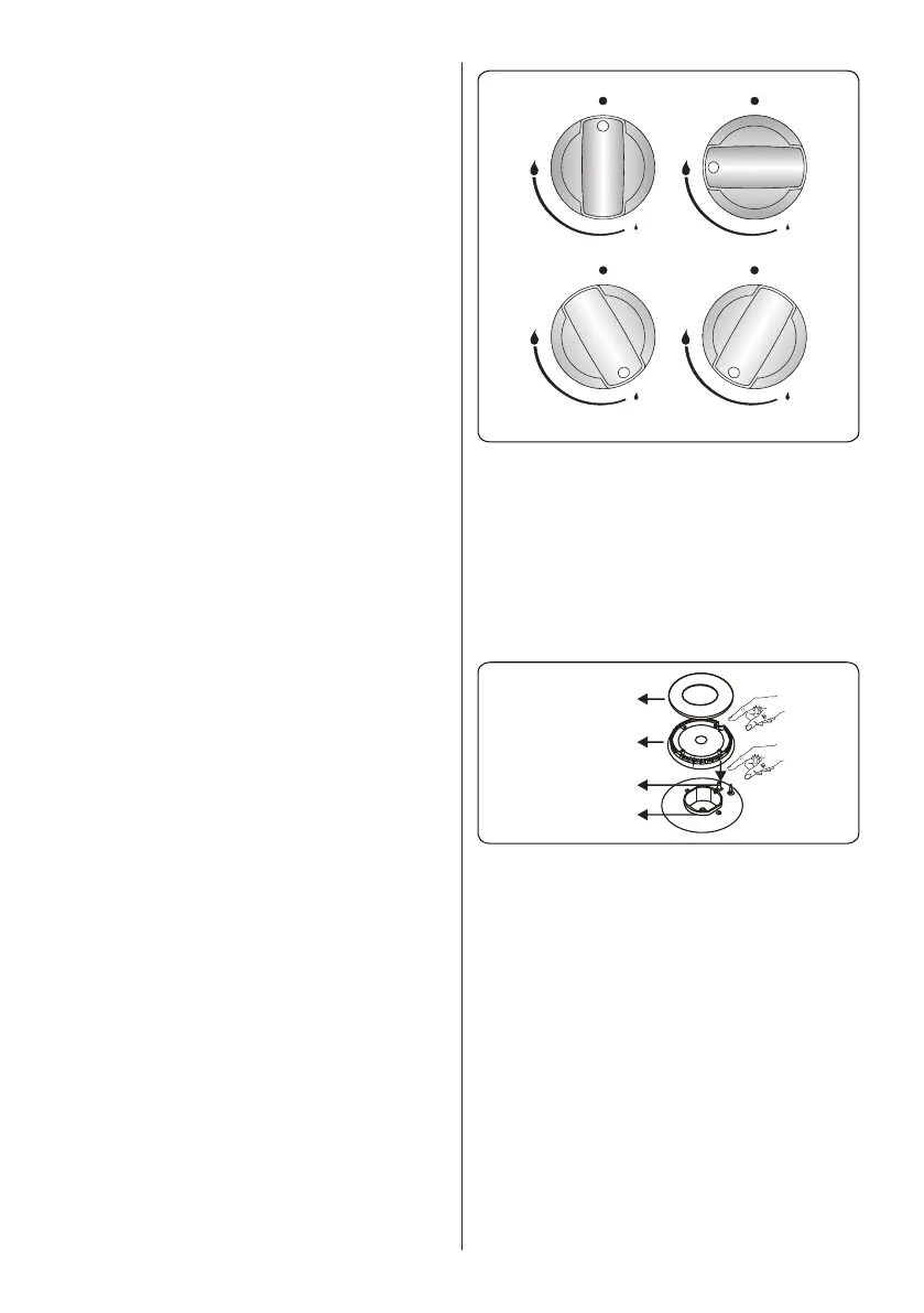 Za gorilnike kuhalnih plošč: Pritisnite