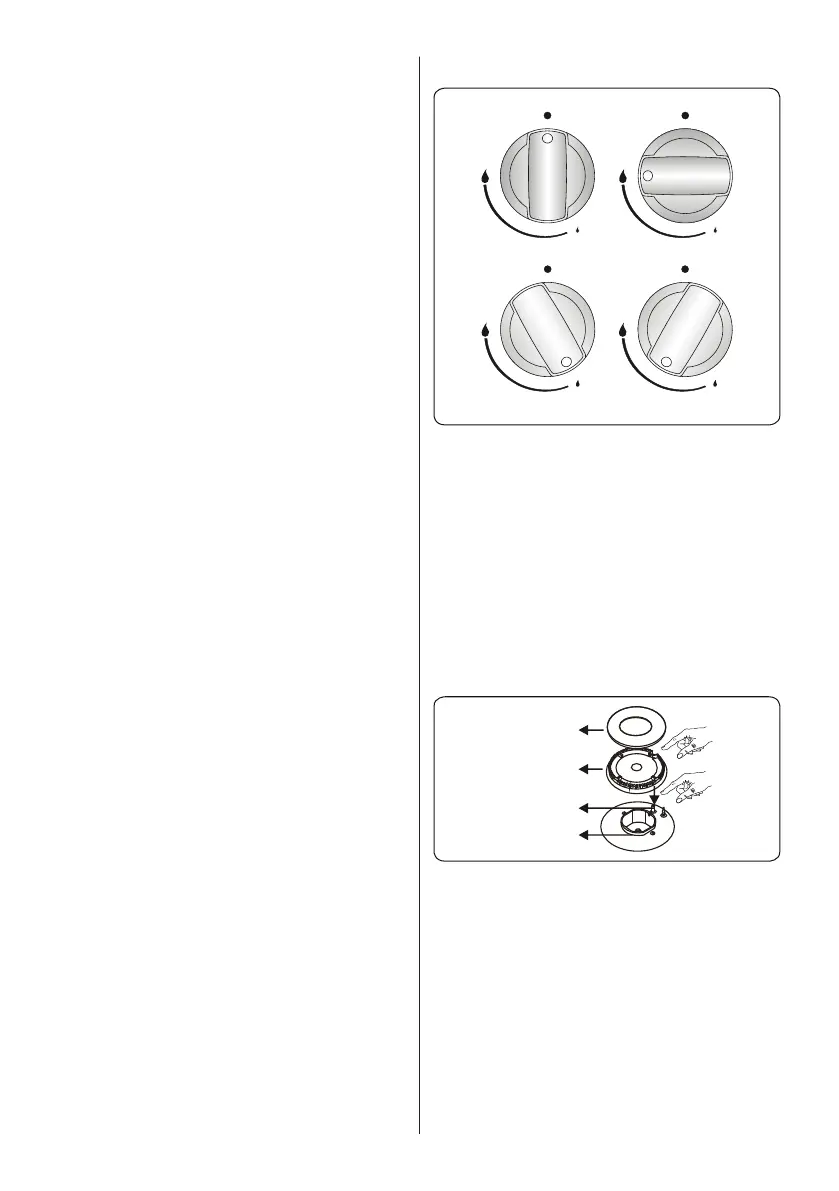 Palniki na płycie: Wcisnąć gałkę palnika,
