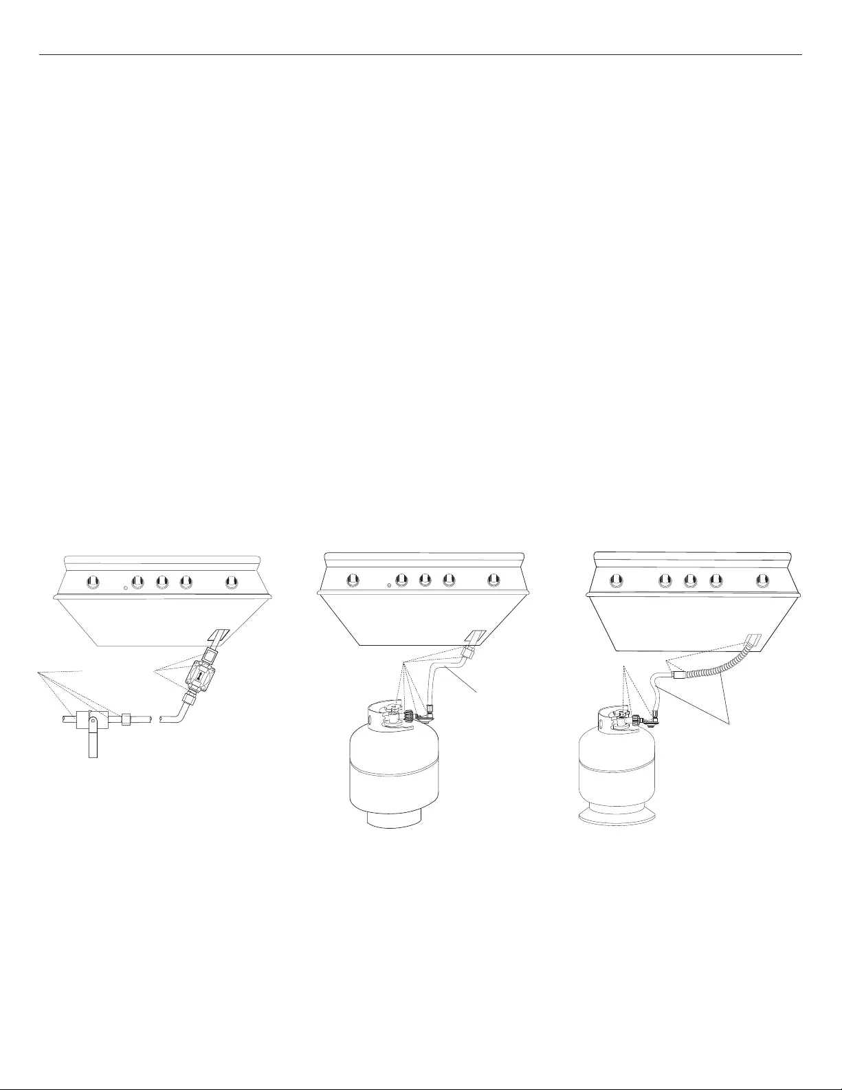 y Check all gas supply fittings for leaks before each use. Keep a spray bottle of soapy water near the