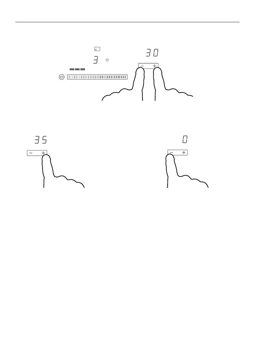 1 With the cooktop turned on, repeatedly tap the – and + timer controls together until