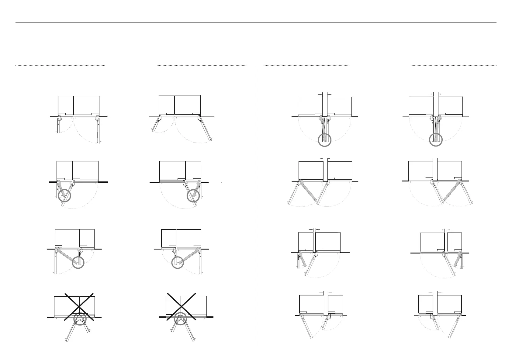 The following are options for dual/multiple installation with reference to the door opening range and partition (optional) between two appliance combinations.