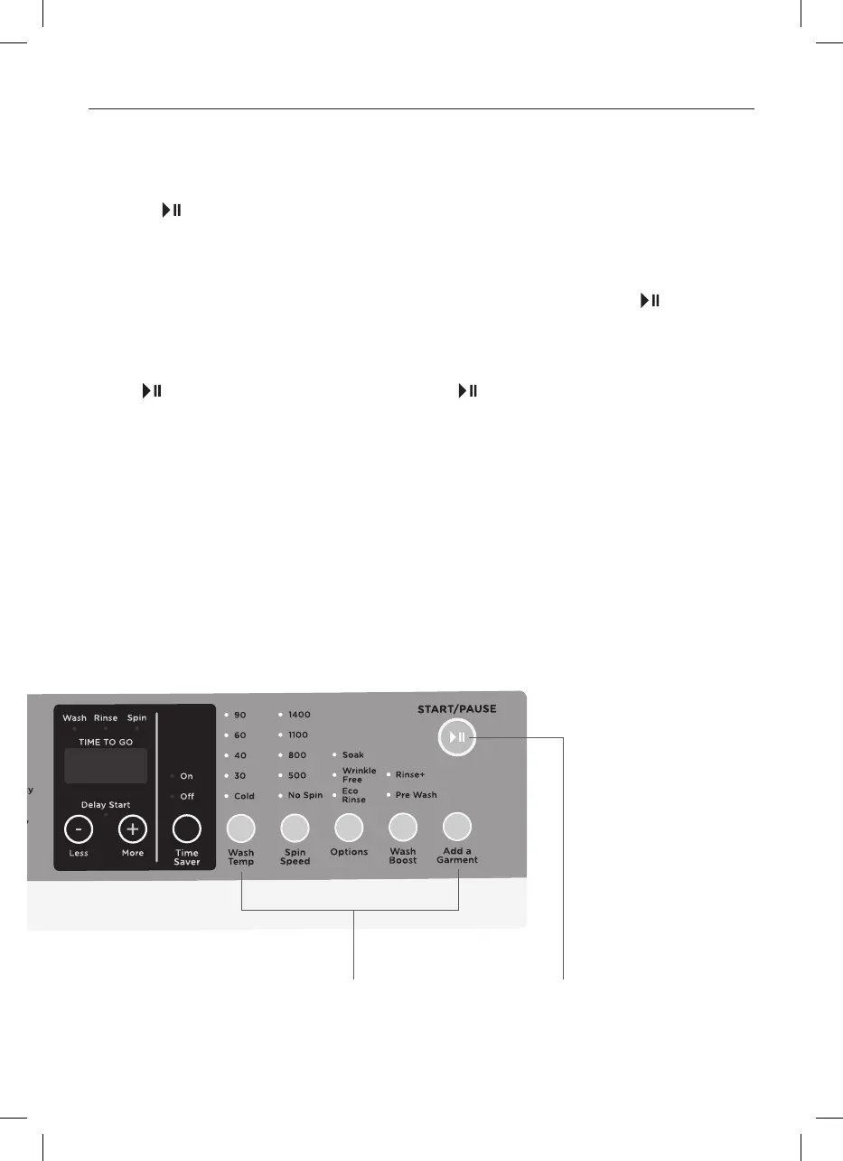 If you wish to stop your washer at any point during a cycle simply touch to pause the