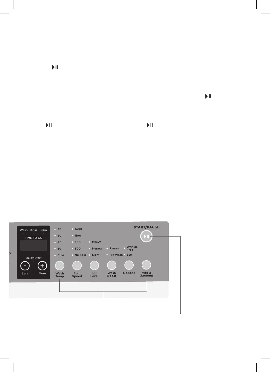 If you wish to stop your washer at any point during a cycle simply touch to pause the