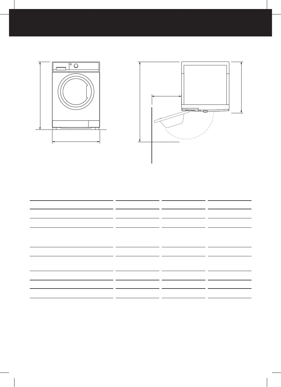 Note: the exact height of your washer is dependent on how far the feet are extended