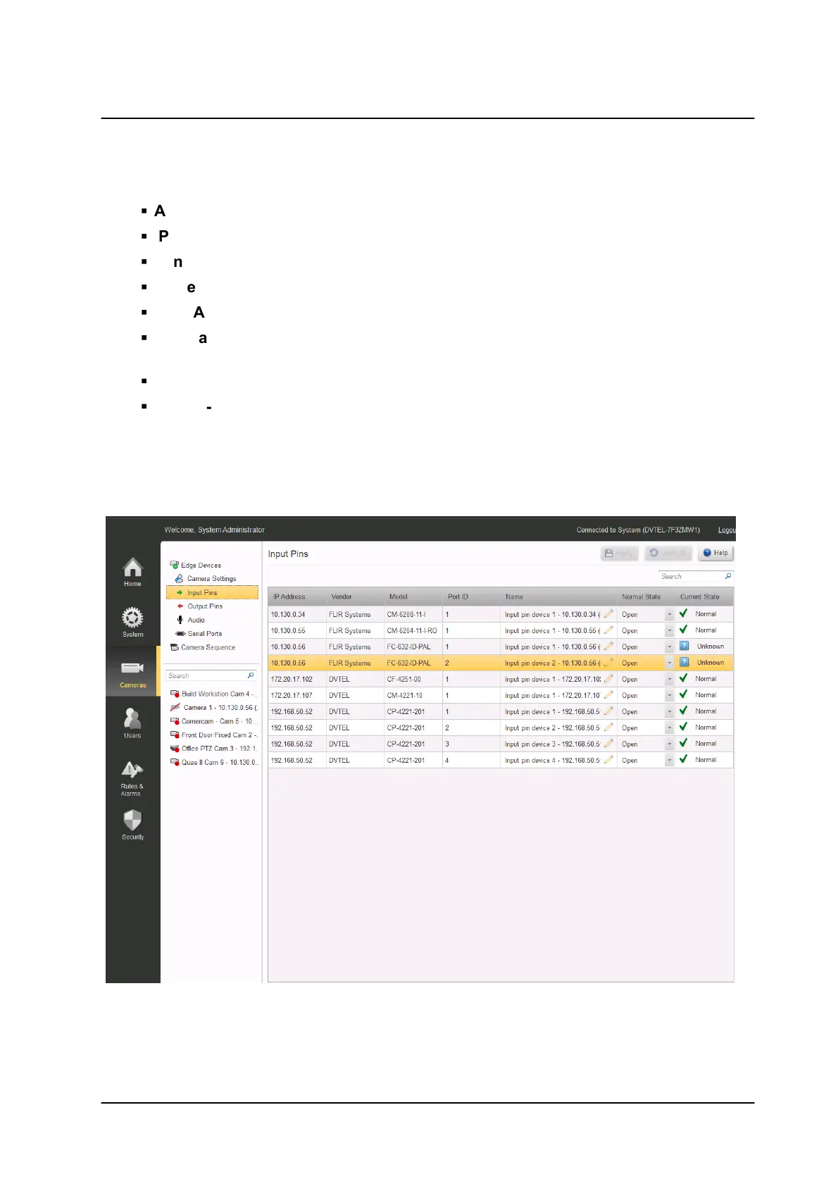Cameras/Edge Devices/Camera Settings/Input Pins