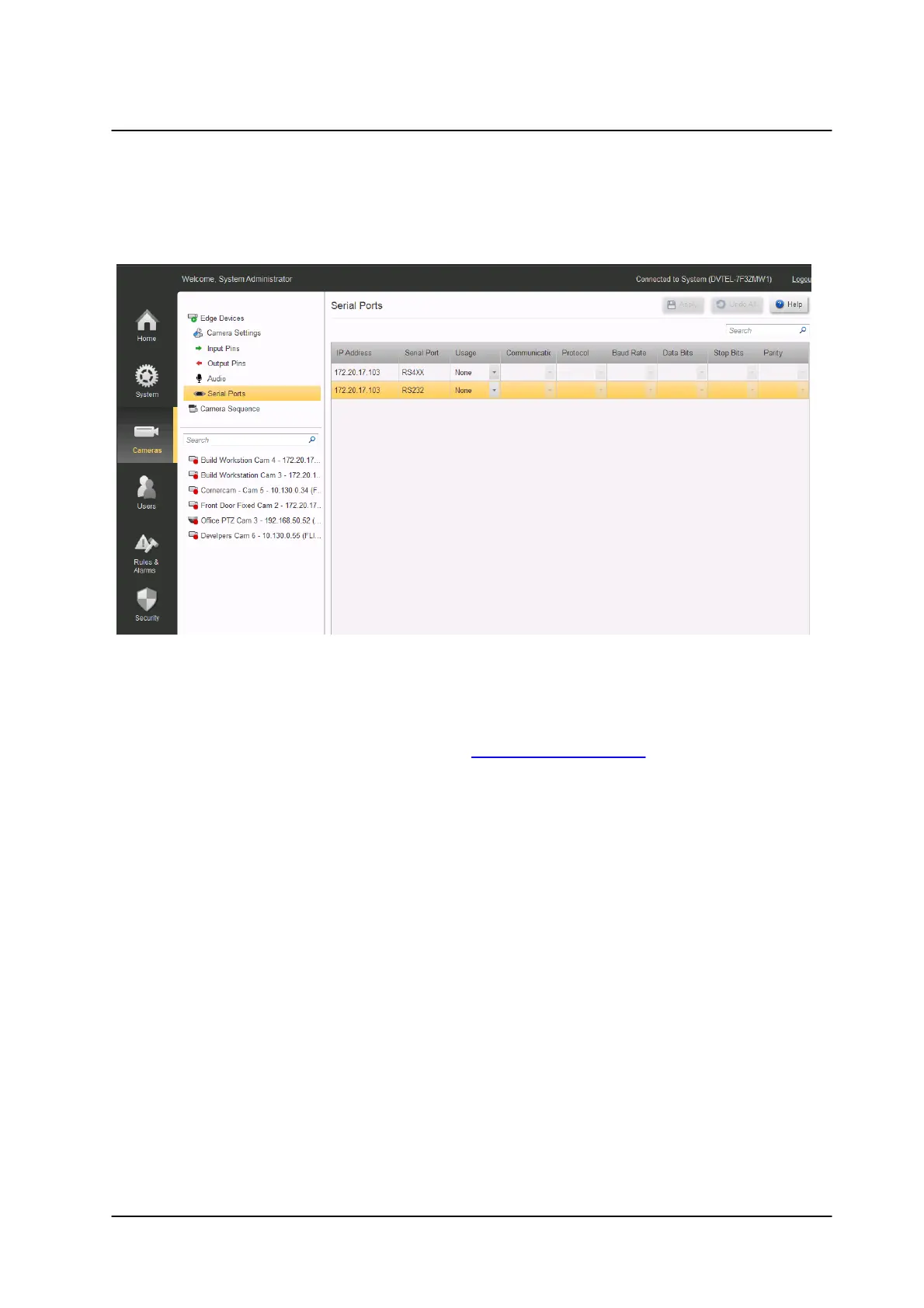 Cameras/Edge Devices/Camera Settings/Serial Ports