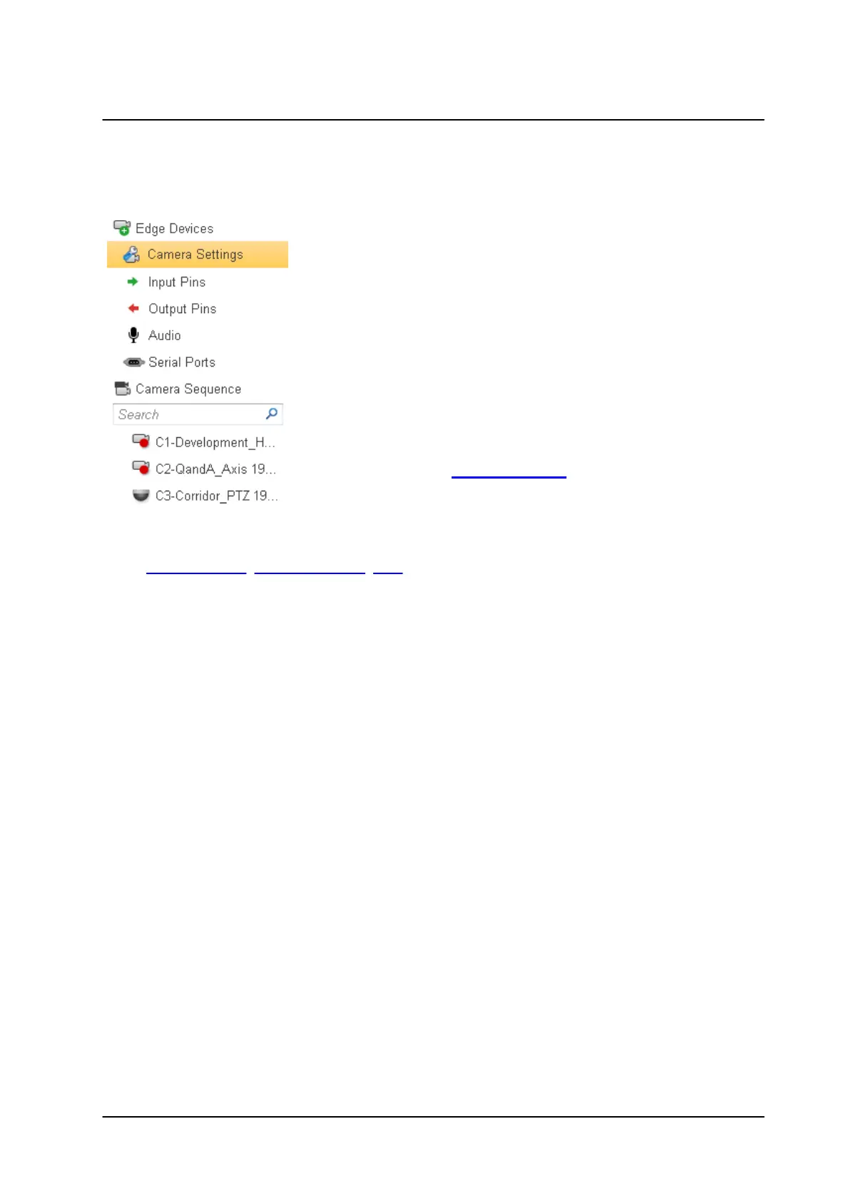 When a camera is selected, the Camera Details screen is shown. Clicking on each of the