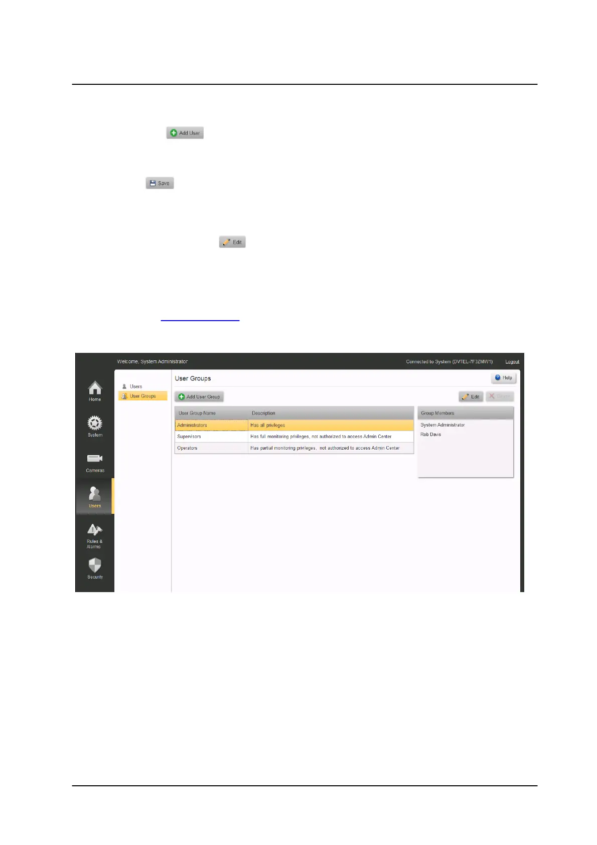 defined using the Add User Group screen.