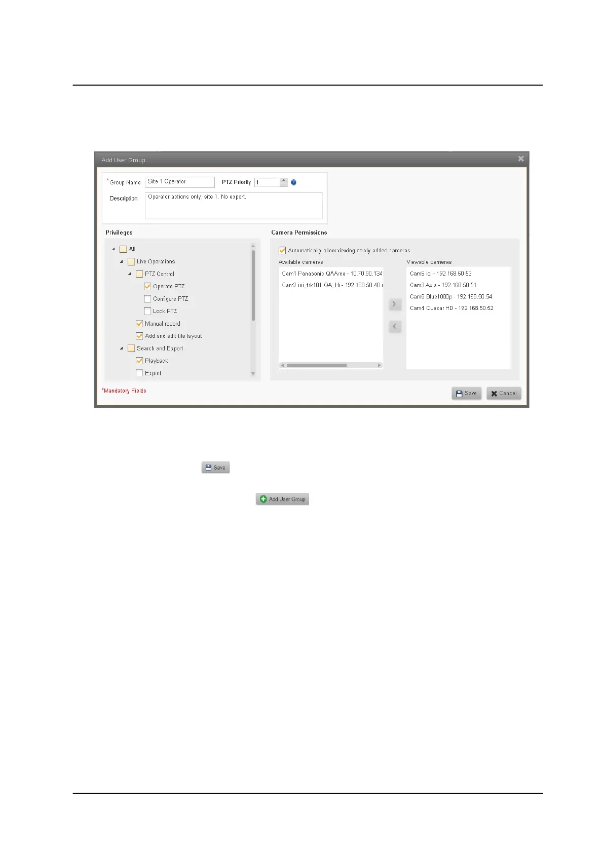 Note: The settings for the default User Groups can be displayed using the Edit button, but they are fixed -