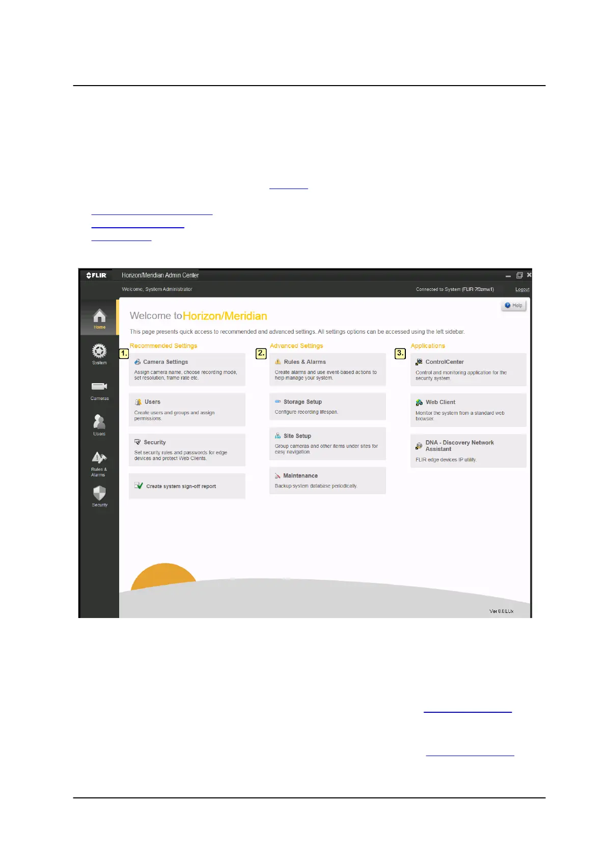 When a User logs in to Horizon/Meridian , the Home screen displays. *