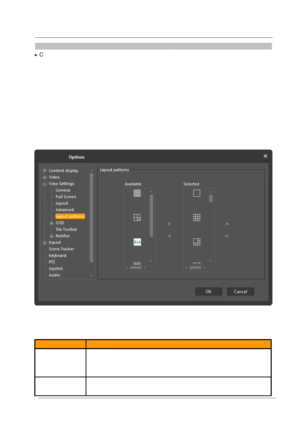 move patterns between the Available and Selected lists so that only those Layout patterns that