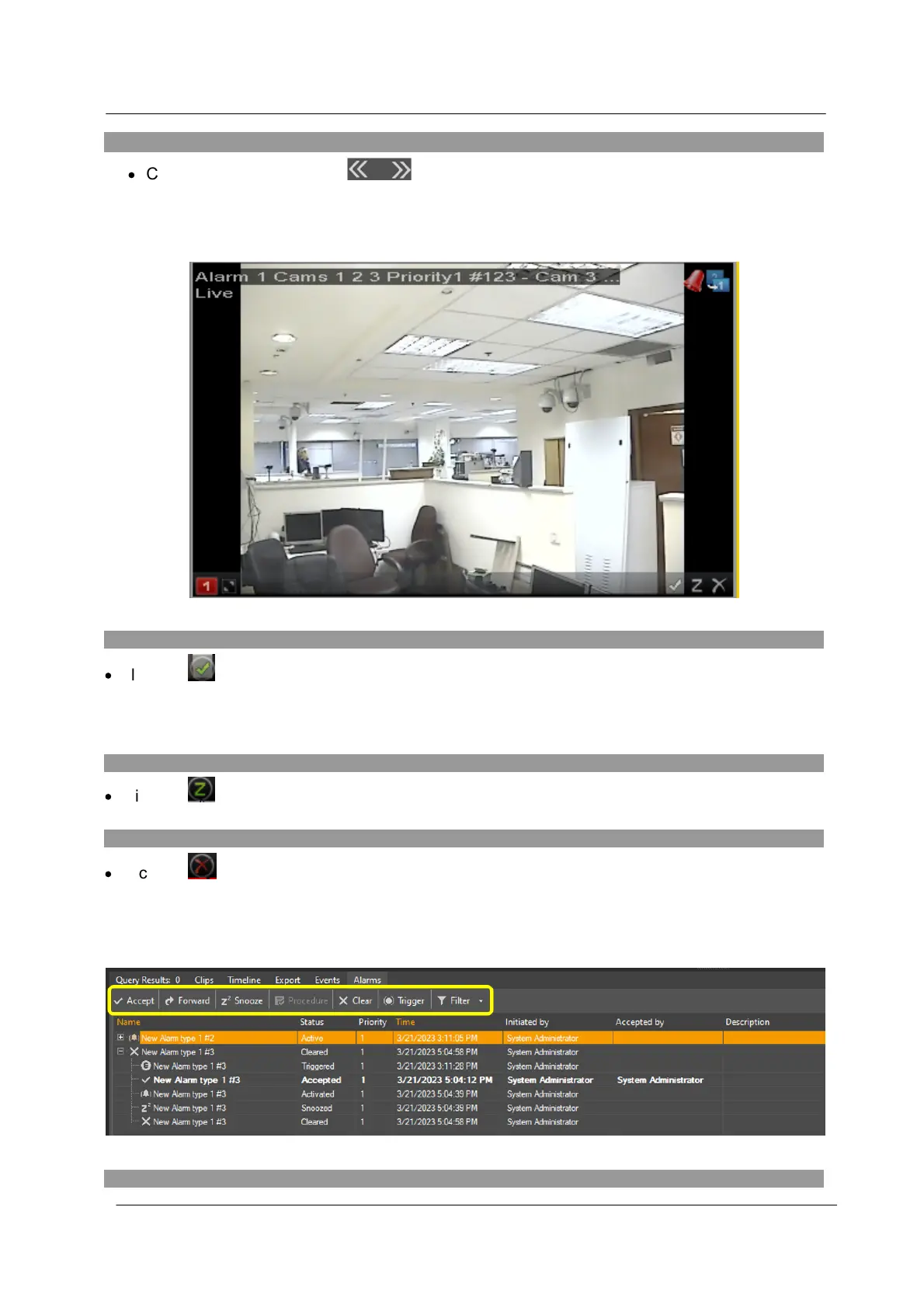 Once an Alarm is being displayed in a Viewing Tile, you can use the controls in the Viewing Tile