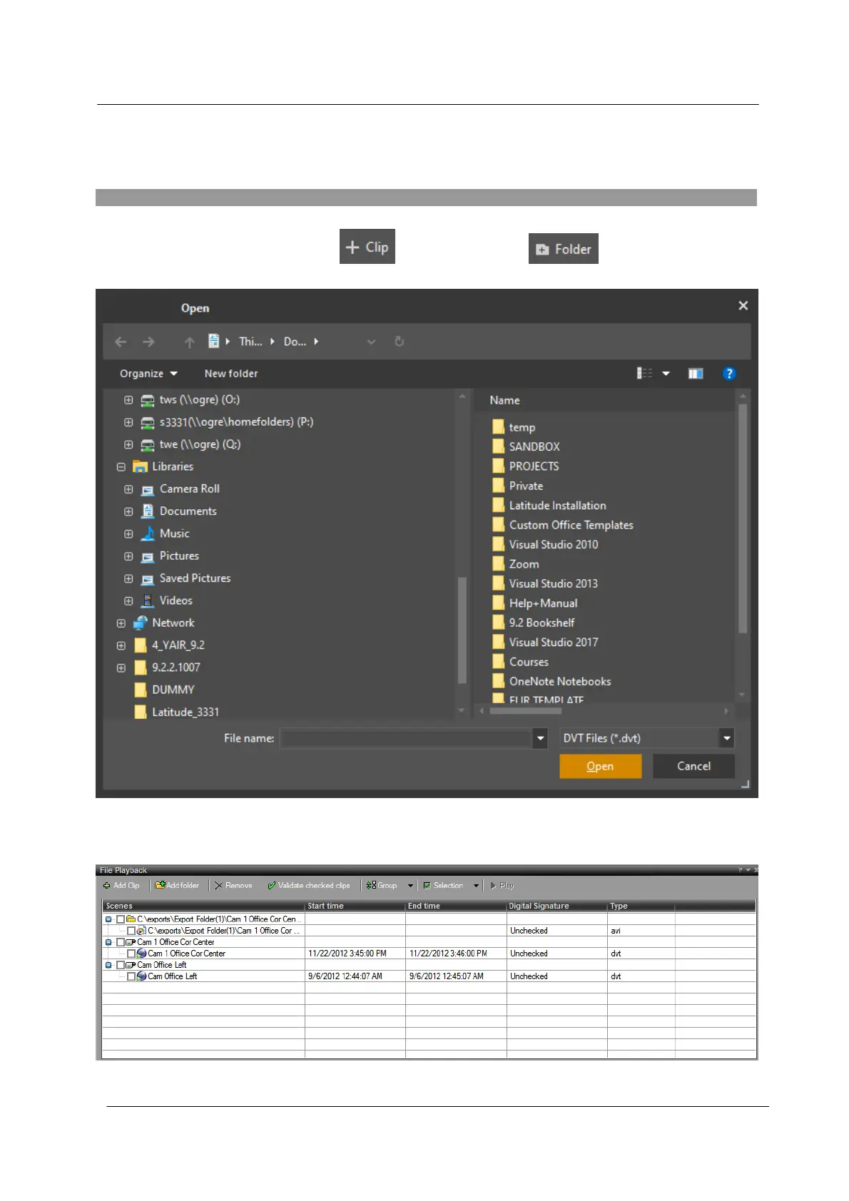 3. Add folders and/or files (clips) by selecting them and click Open.