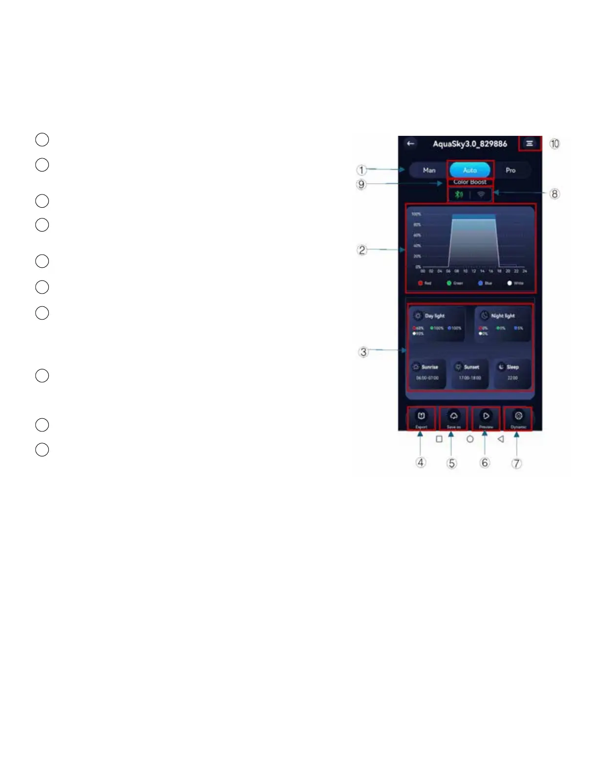 Control mode display: Aquasky 3.0 LED series can be controlled