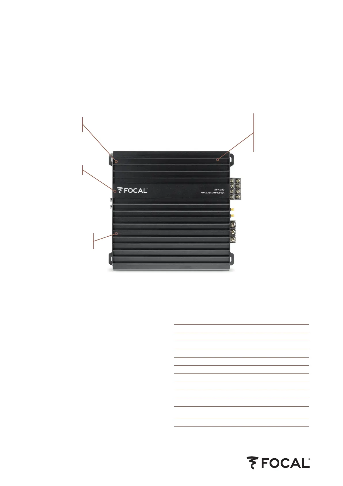 from your Focal speaker drivers. Our engineers have designed the AP 4.380 amplifier to be simple to install