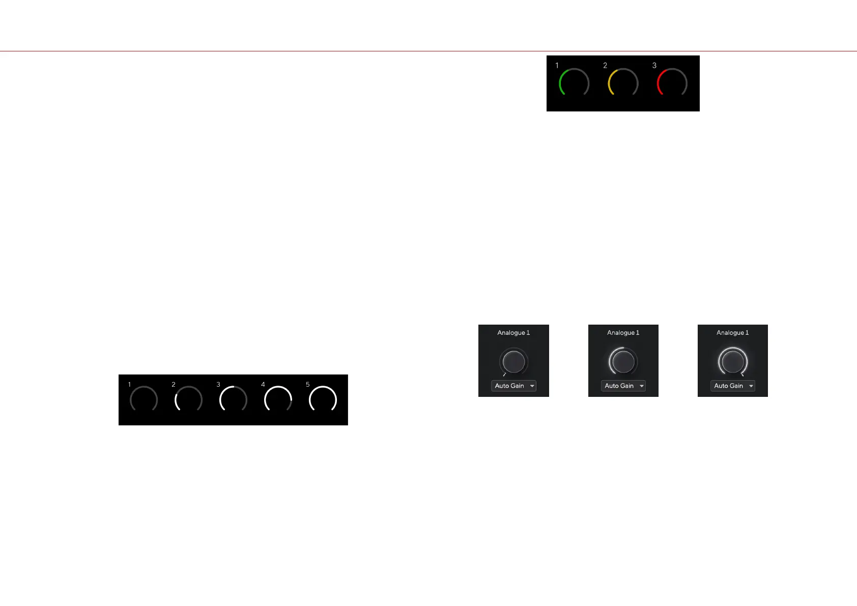 Terwijl u de versterkingsregelaar beweegt, licht de versterkingshalo geleidelijk met de klok mee