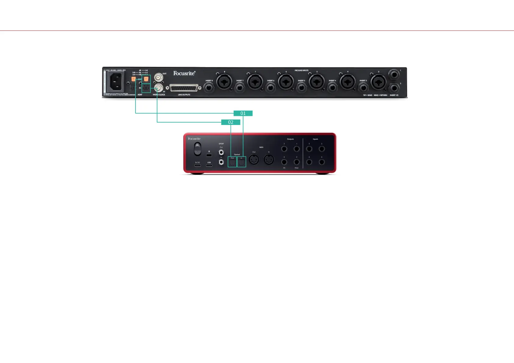 • Een externe ADAT-voorversterker, zoals een Clarett+ Octopre.