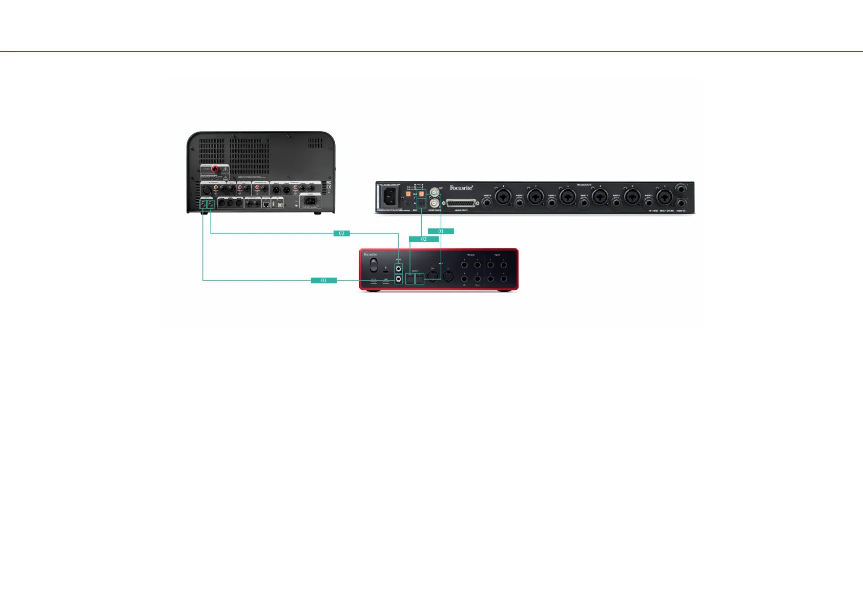 • Een externe ADAT-voorversterker, zoals een Clarett+ Octopre.
