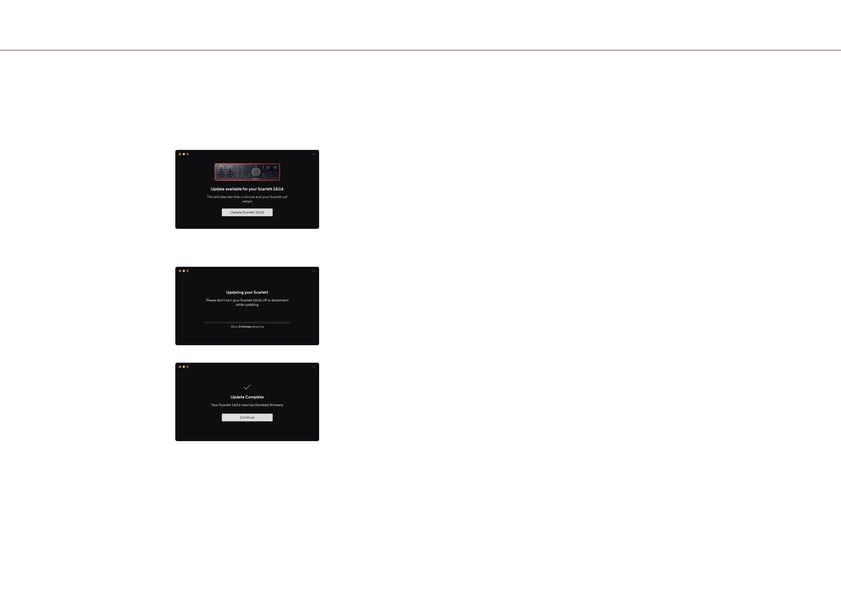 Focusrite Control 2 de update start, koppel uw apparaat niet los Scarlett 16i16 terwijl