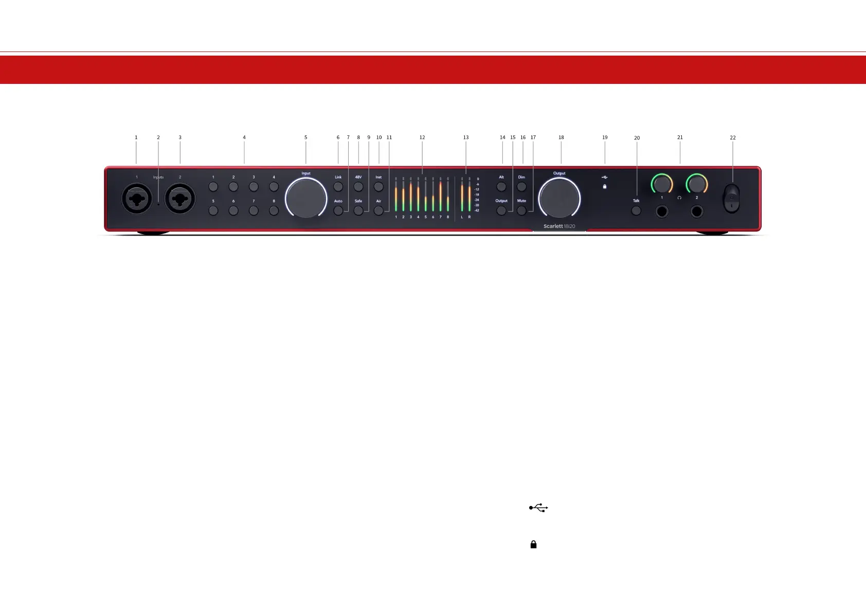 Bekijk gratis de handleiding van Focusrite Scarlett 18i20 4th Gen, stel vragen en lees de antwoorden op veelvoorkomende problemen, of gebruik onze assistent om sneller informatie in de handleiding te vinden of uitleg te krijgen over specifieke functies.