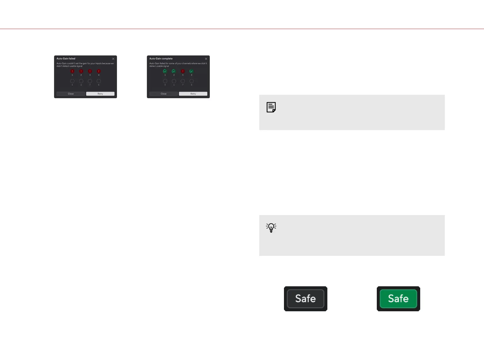Multichannel Auto Gain kan tijdens het proces mislukken voor één, meerdere of alle kanalen. Als