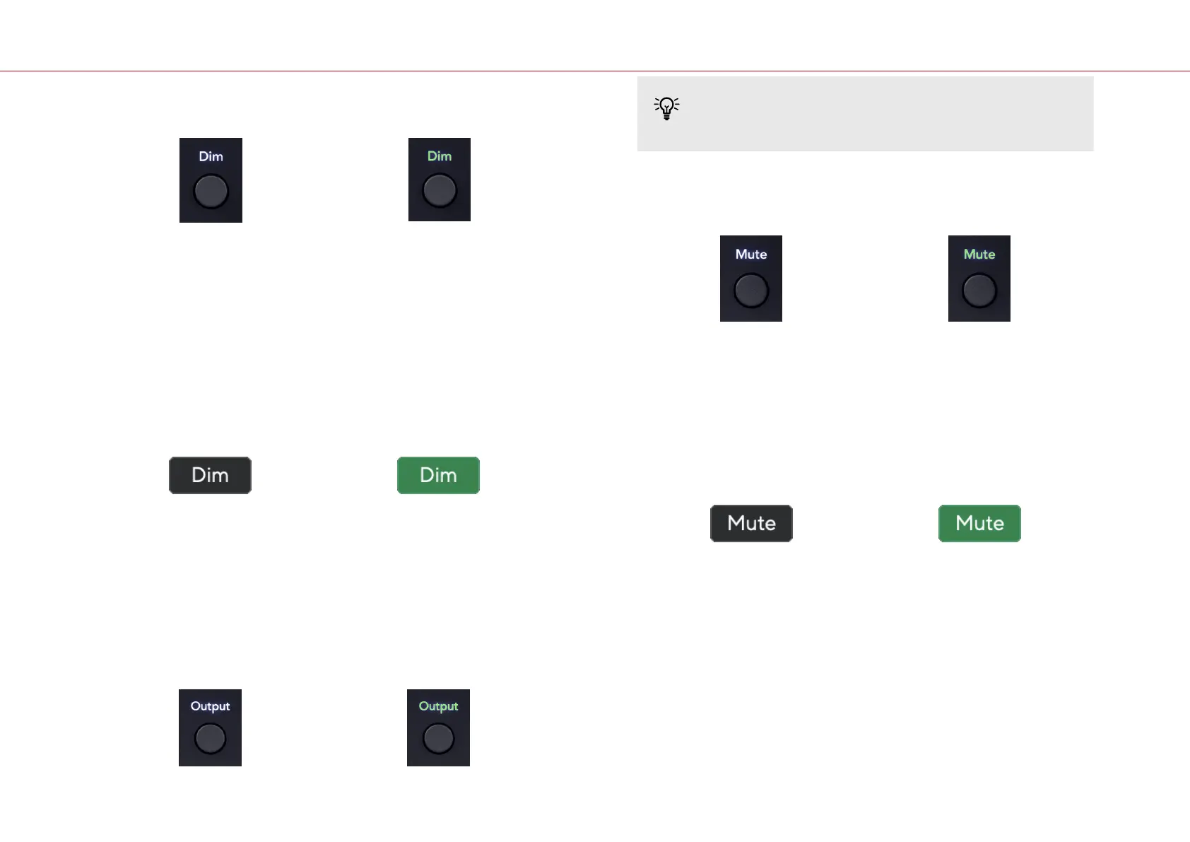 verlaagt het uitgangsniveau dat naar uw uitgangen wordt gestuurd met 18 dB. Indien actief, Dim