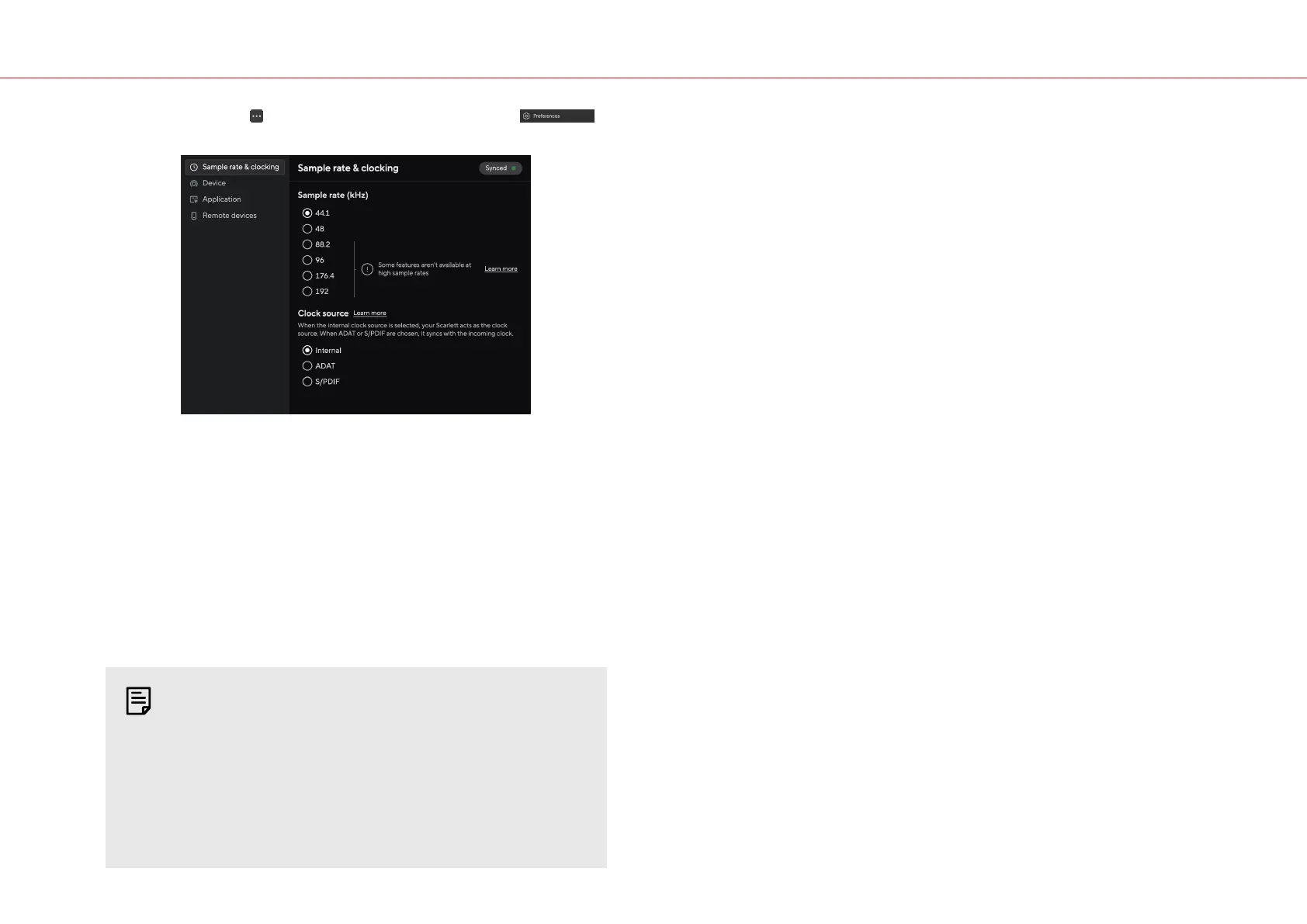 De klokbron bepaalt hoe uw Scarlett synchroniseert in uw opstelling. Meestal stelt u dit in