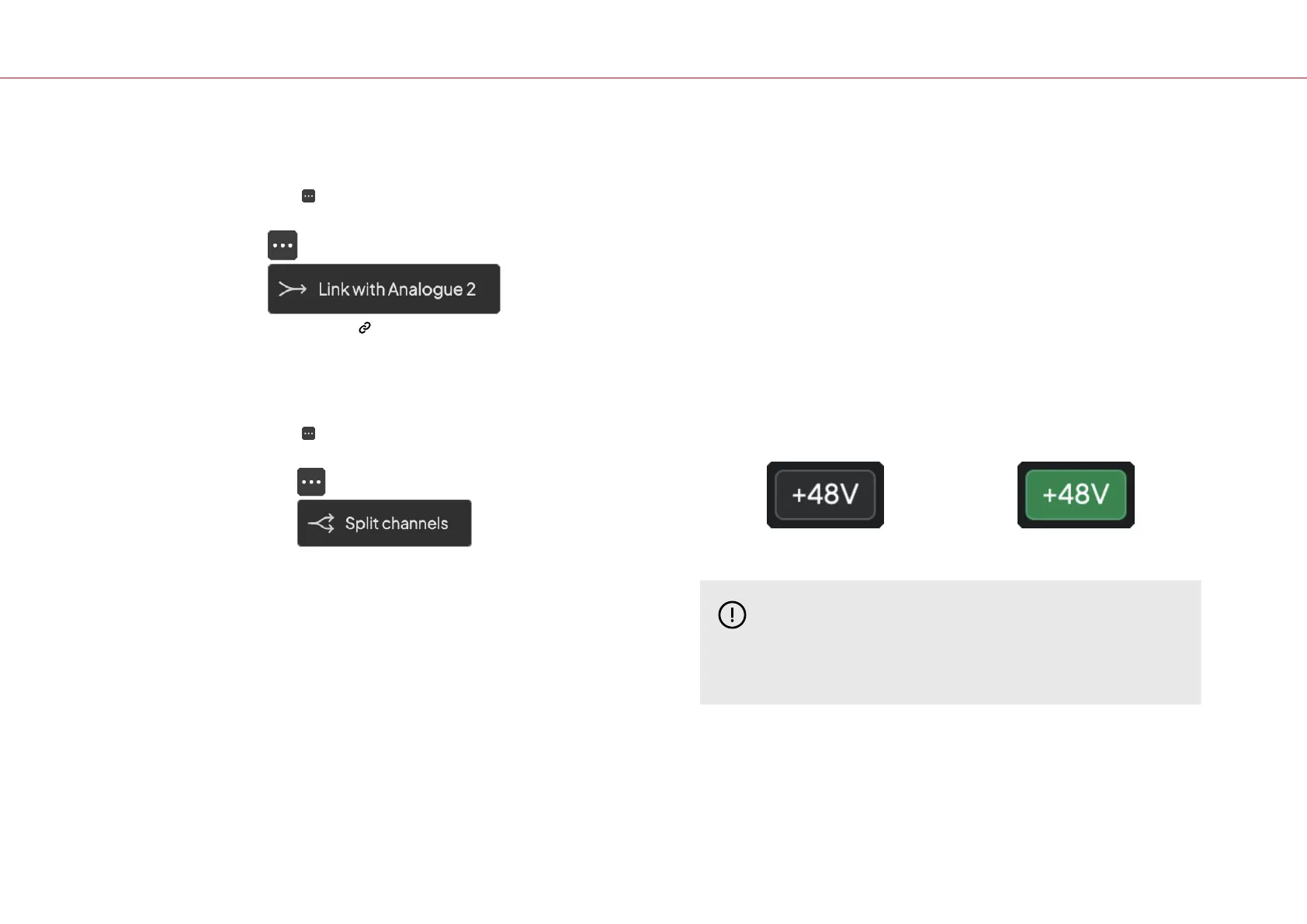 +48V Fantoomvoeding uitgeschakeld +48V Fantoomvoeding ingeschakeld