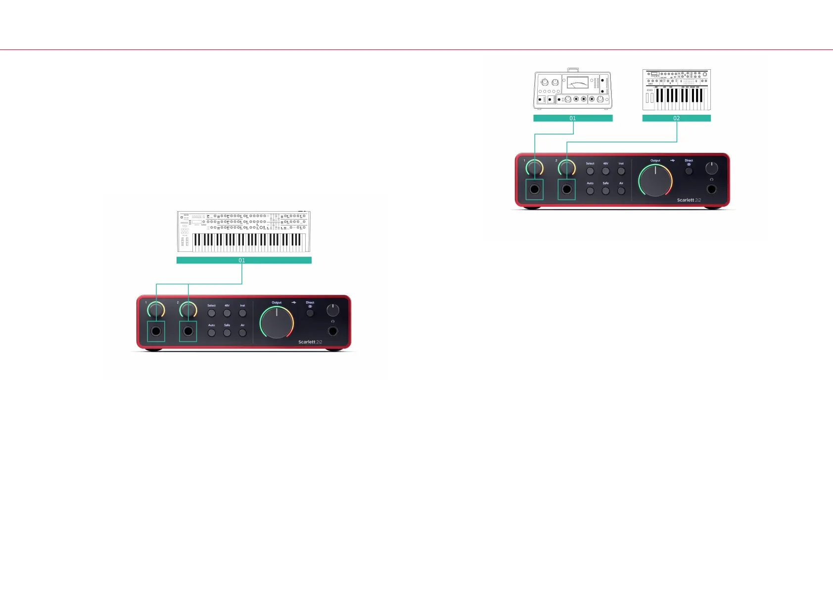 Inst wanneer u lijnniveau-apparaten aansluit op de Scarlett 2i2.